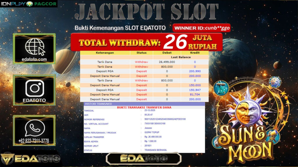 Selamat kepada member setia EDATOTO telah mendapatkan JP Bermain Di : Destiny Of Sun And Moon